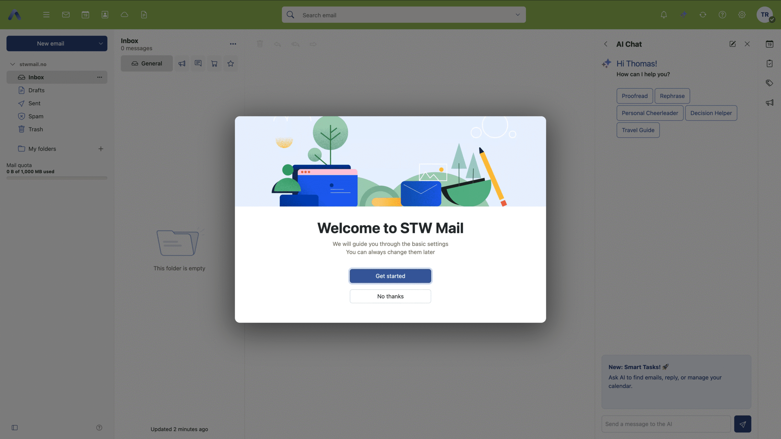 Add your own domain during the order process for a professional address, then connect other accounts later for a unified inbox. Migration and setup are seamless with built-in guidance, and if questions arise, our support team in Oslo is available during working hours.