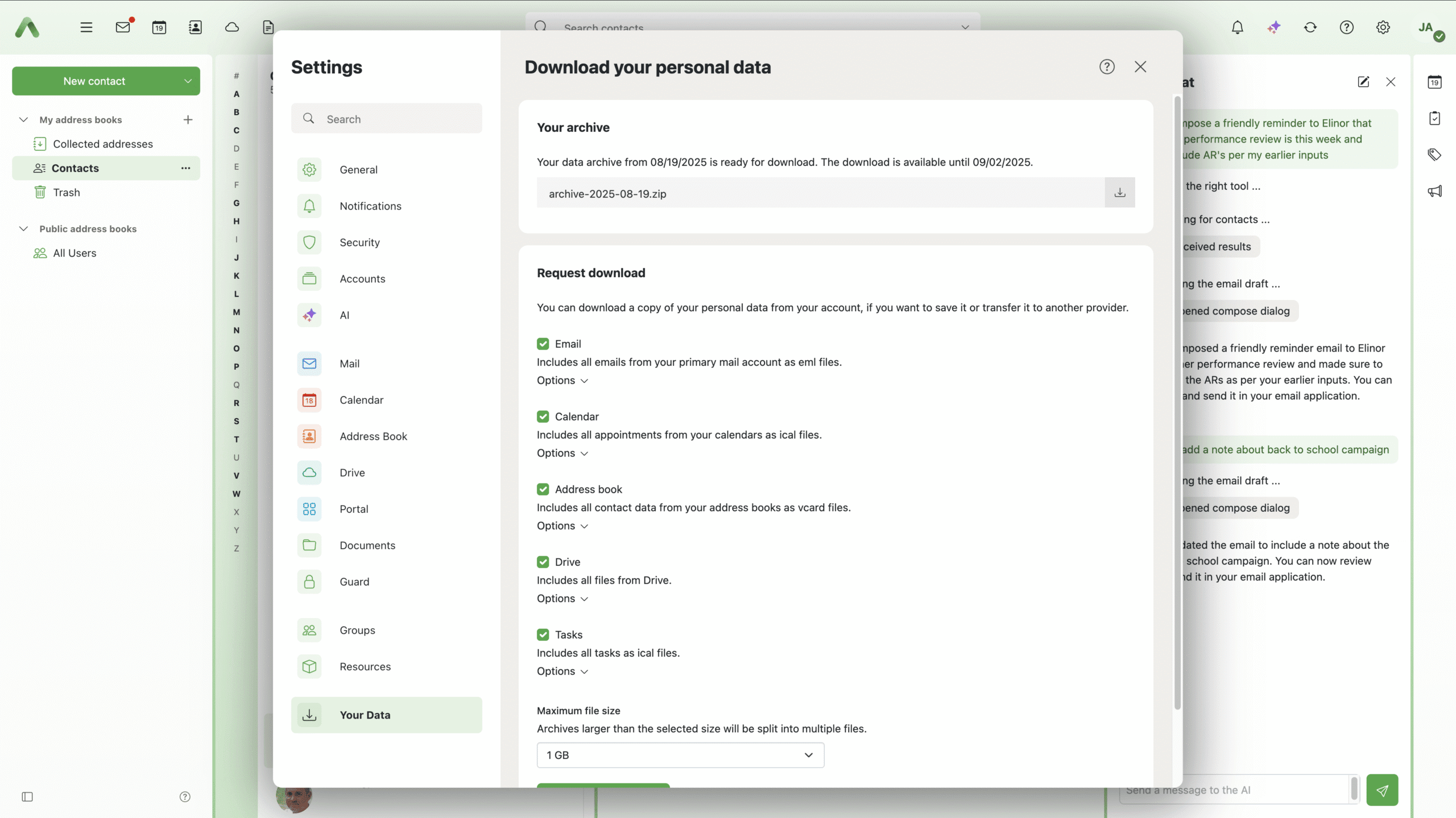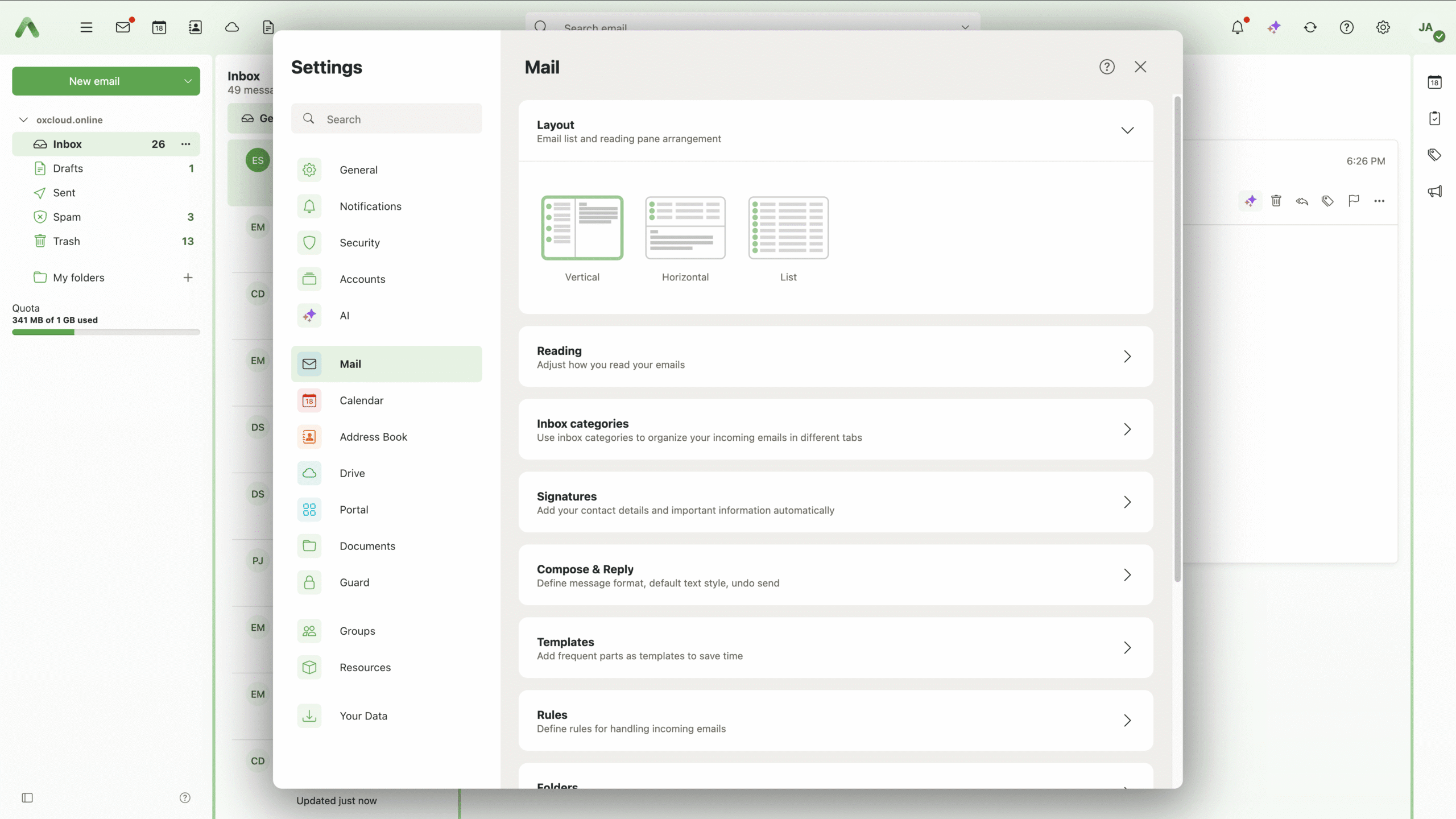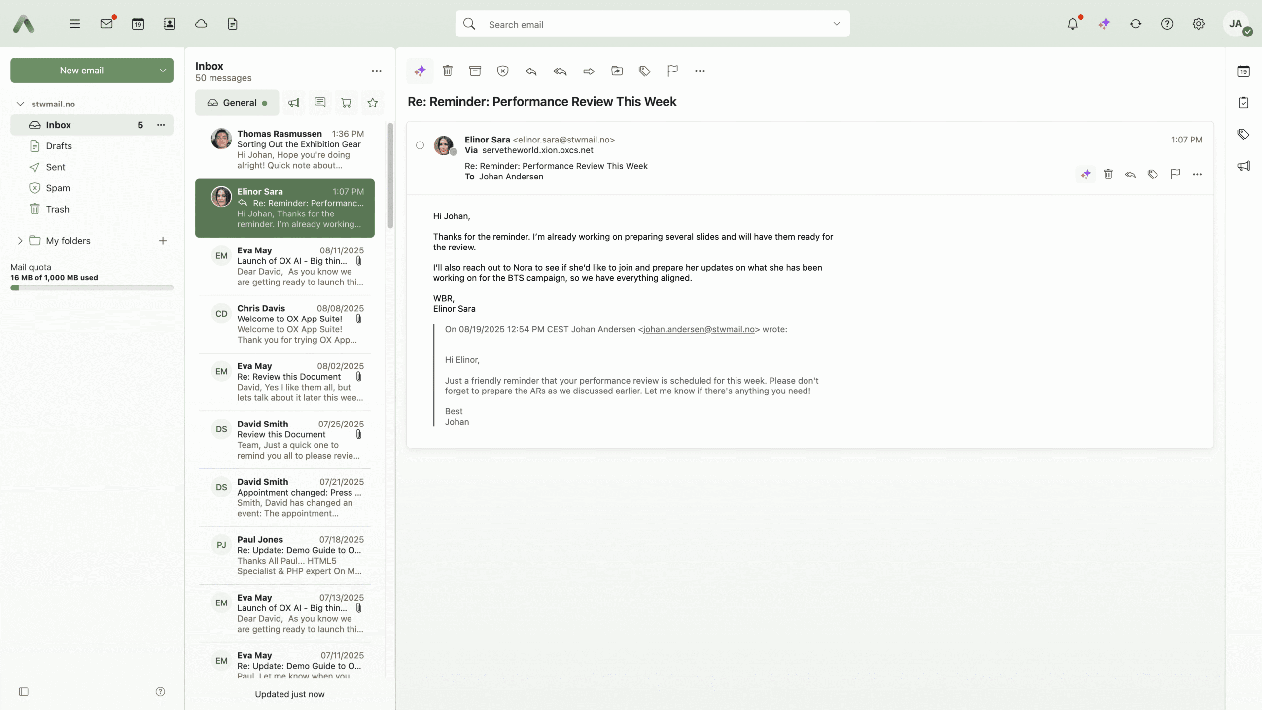 Built on Open-Xchange—Europe’s leading independent email platform—our inbox combines a modern interface with smart folders, instant search, “send later,” and custom rules to keep you organised.