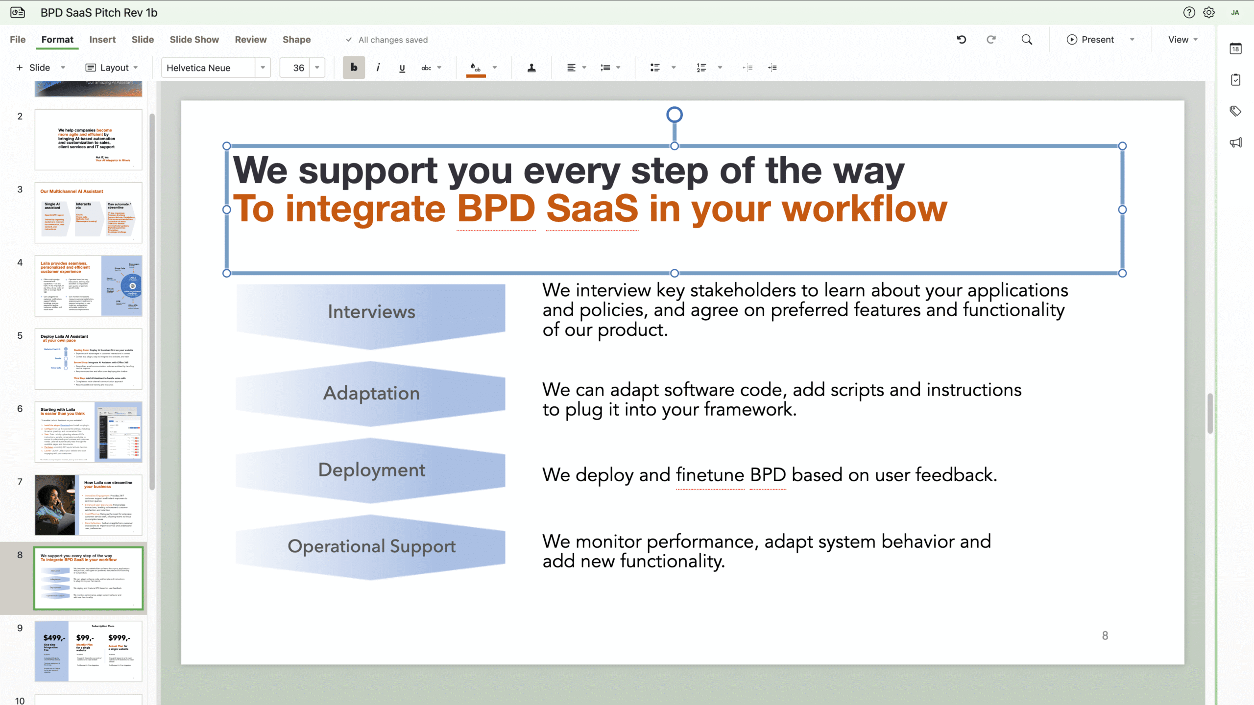 Real-time editing works across Mac, PC, and tablet browsers alike, so everyone can join in with zero installs and no extra steps. And even if you’re still on the move and it’s time to present, you can run the deck straight from your smartphone.