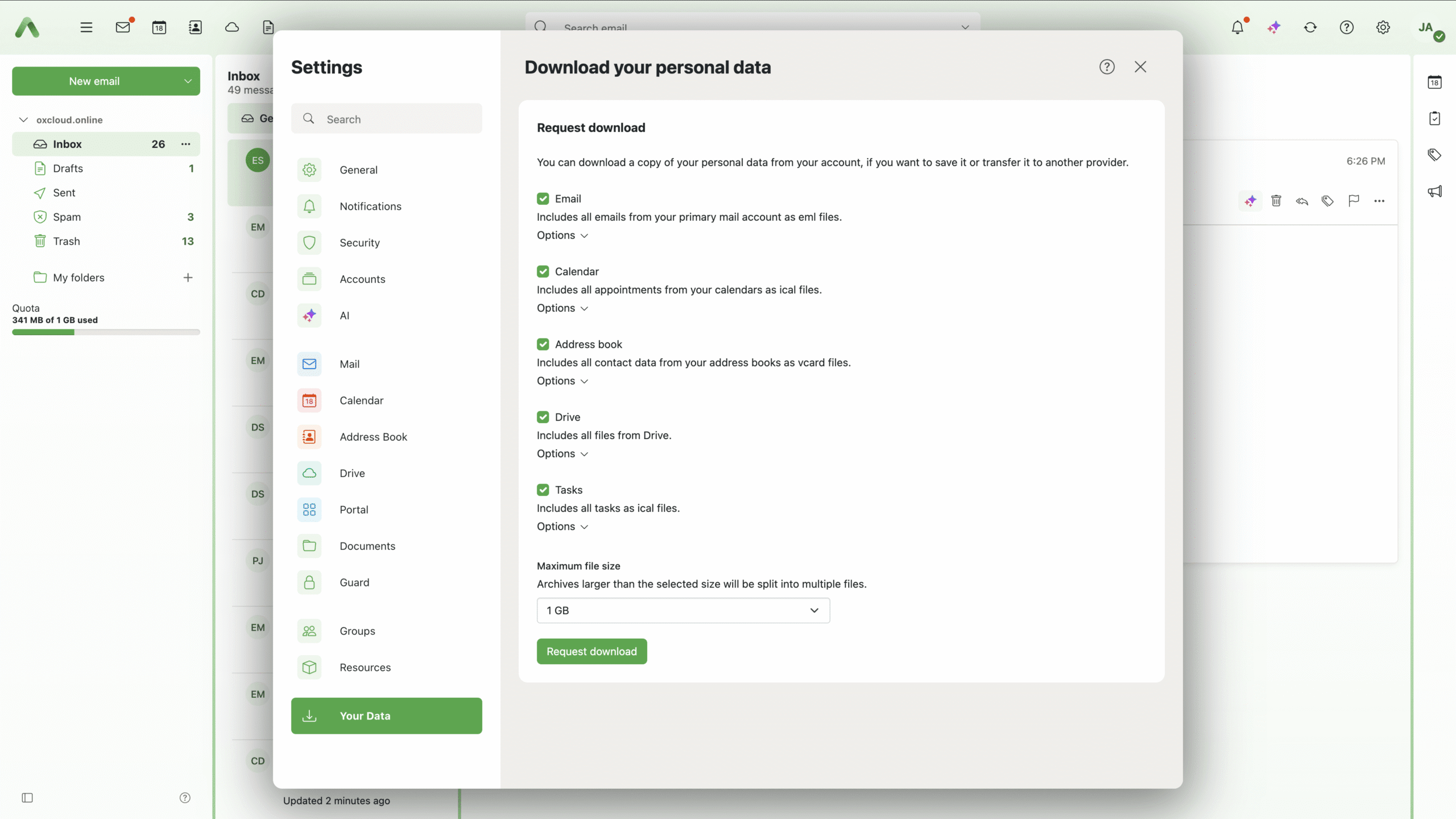 Unlike basic bundled email, it combines secure, ad-free, GDPR-compliant mail with built-in calendar, contacts, tasks, and (in the Productivity Plan) OX Drive storage and collaboration — taking personal productivity to the next level.